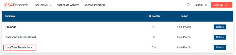 瑞科翻譯公司(LocaTran Translations)憑借在多語言服務領域的出色表現與穩定增長,再次躋身“亞太地區區域市場領導者”榜單,成為中國(包括中國香港和臺灣地區)入選的 18 家語言服務企業之一。